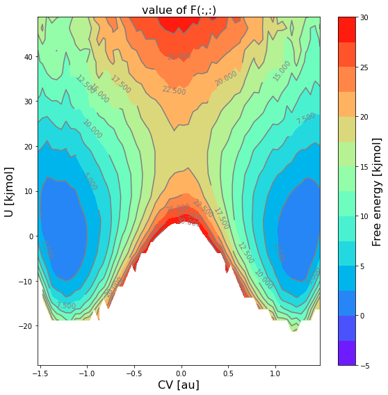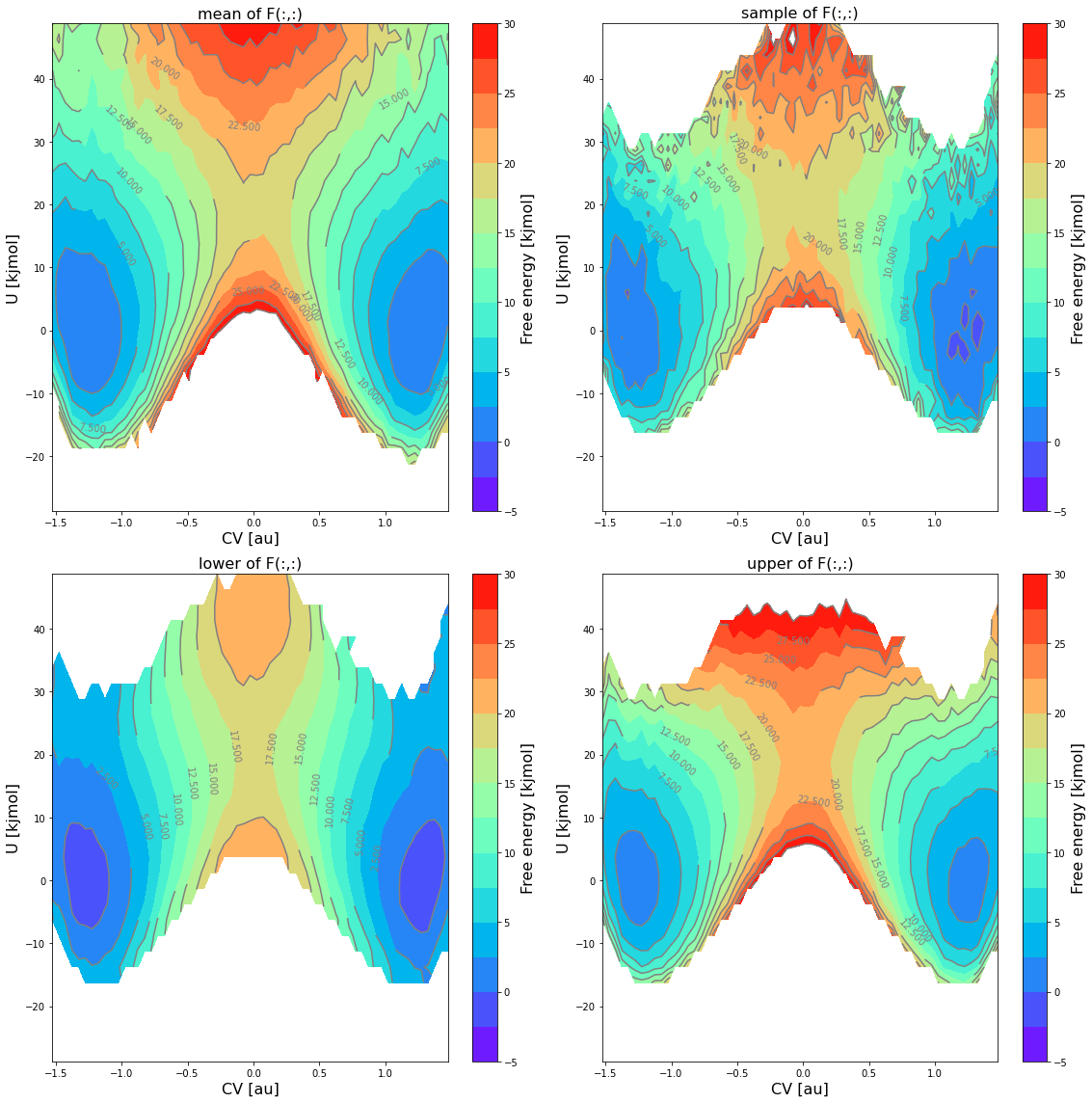 obsskeyword:… a 2D contour plot of the mean free energy itself, the lower and upper limit of the 2-sigma error bar and a random sample using the